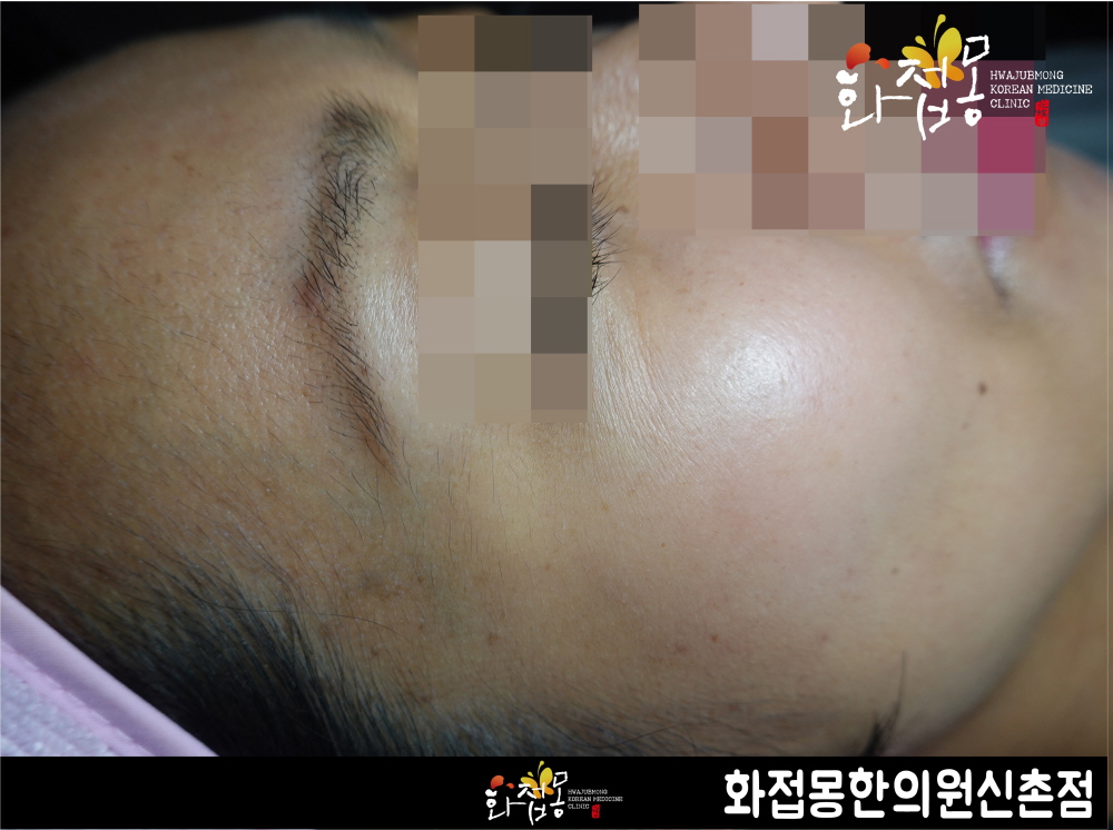 1년만에 내원한 거우침 시술 받은 환자의 장기 경과입니다.